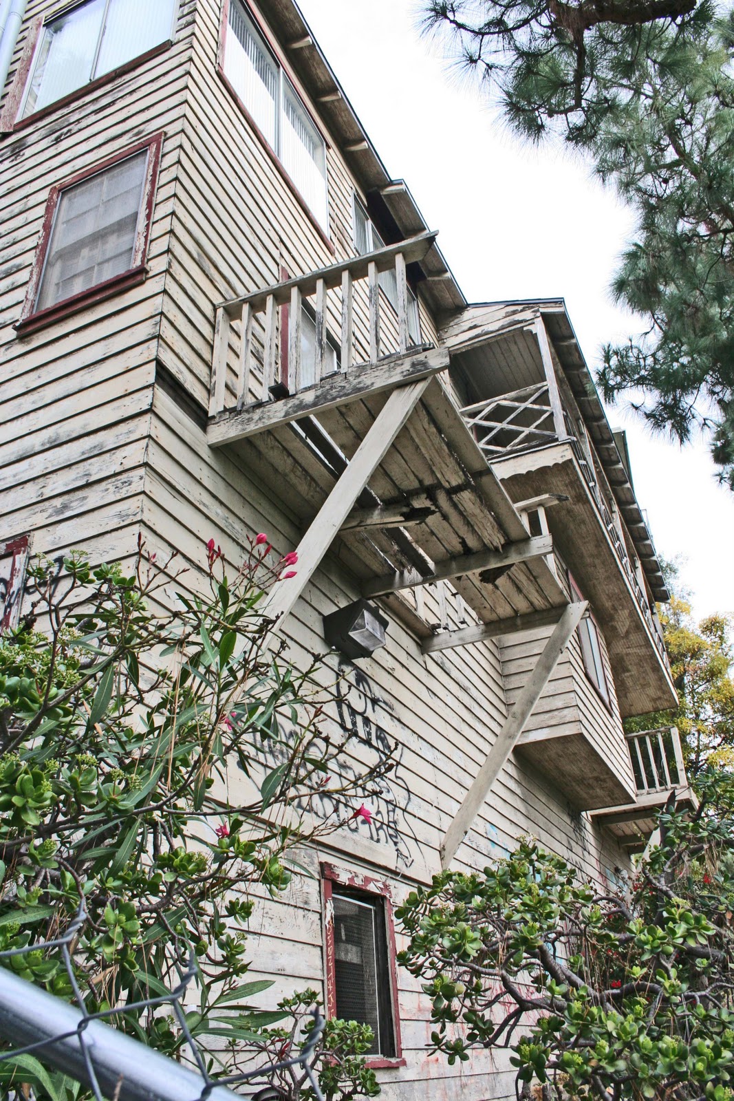Only recently however did I discover that there's a place in my own neighborhood known locally as the Haunted House (that's it above). The actual address is 5672 Tryon Road, and its owners seem to have abandoned it about a decade ago, which is surely a mystery in itself. Who abandons a house in L.A.? Even if it's one that looks like it belongs in the swamplands?