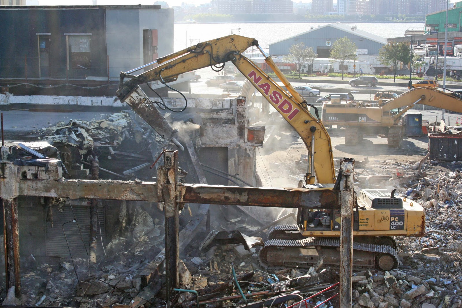On the two days I went to the High Line, a building was being demolished very close to the southern end of the walkway. A guy in a demolition machine, one with caterpillar tracks and a single arm with what looked like a giant hole punch on the end, though I believe it's actually known as a hydraulic hammer, was doing the job all by himself.