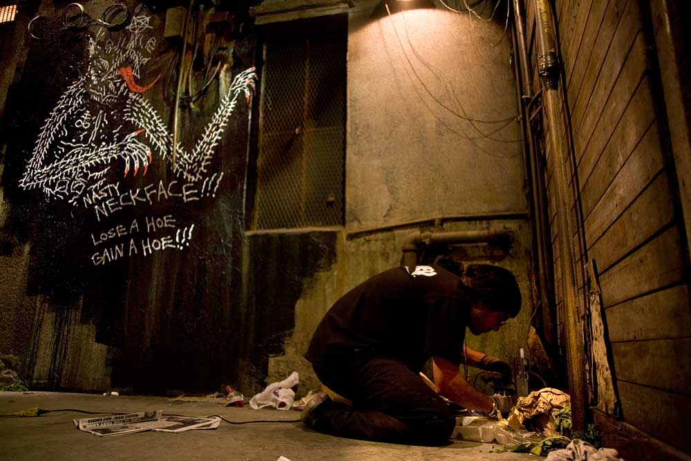 A forgivable sin, I thought. In order to give the feel of the streets, the gallery contained installations, or you might even call them "sets," that recreated the feel of walking through graffiti-scarred neighborhoods.
