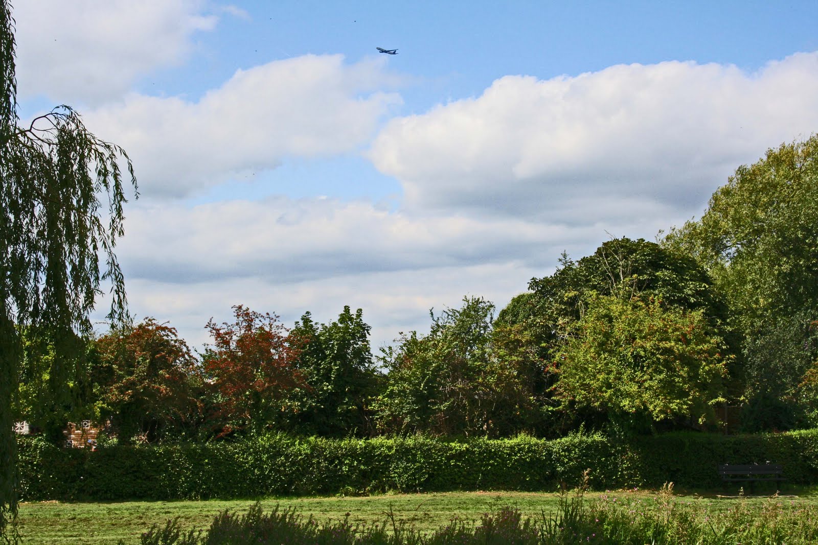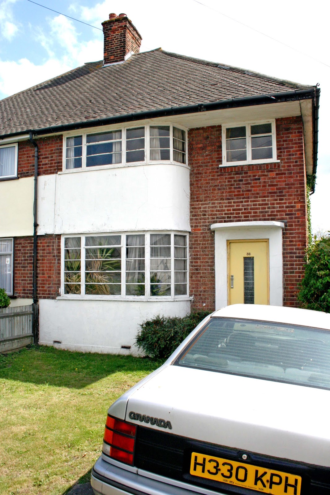 Because of the kind of book that was, I didn't include any photographs, but in a blog it seems fair enough. Fairer still since the house is now up for sale: £320,000 for a modest semi, "in need of work" but perfectly placed for the commuter, with station just a short walk away at one end of the street, two pubs within walking distance, one of them actually halfway along the street, and a nice bit of open space, called Splash Meadow at the far end, a nice place to walk with the occasional low flying aircraft passing overhead.