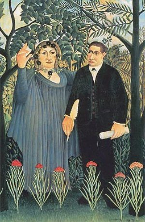 Here's Rousseau's portrait of Apollinaire and Marie Laurencin: