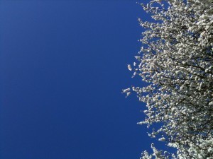 I like stormy weather and I love noticing the differences between the seasons. In books I think a bit of weather can add a lot to the atmosphere the writer is creating. But in real life I’m struggling a bit and still have my UV lamp on in the mornings. This year the cold and the dark does seem to have impacted more than ever on people’s mood as well as their livelihood. It’s hard to avoid. How many of us have woken up and simply wanted to pull the covers over our heads and refuse to face the day until we are ready? At one time or another all of us have tough patches that we go through and the last few weeks have been very tough for me with a very poorly puppy and various other domestic crises. So today I am posting a gorgeous blue sky and blossom picture to celebrate the start of spring and wish everyone happy times.