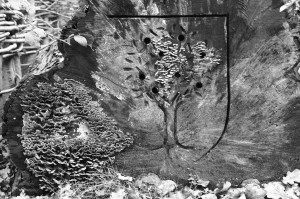 A different carving comes from the Royal Horticultural Society gardens at Wisley, which I visited last week. The RHS was established in 1804 with the name The Horticultural Society of London. Founder members were Sir Joseph Banks and John Wedgwood and the aim of the society was “to collect plant information and encourage the improvement of horticultural practice.” These days the society is famous for its flower shows which started in the late 1820s with floral fetes on the Chiswick estate of the Duke of Devonshire. They were part of the social season and very fashionable. This picture comes from the glorious pinetum at Wisley and is the RHS symbol carved on the end of a tree trunk and captured here in black and white in a rather stunning picture by my talented dh!