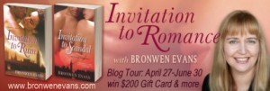 Between April 27th to 30th June, Bron will be traveling throughout the blogosphere telling people about her newest book, INVITATION TO SCANDAL. At most places she’ll be giving away a copy of INVITATION TO SCANDAL to a random commenter (open to US and international residents). If you win and read the book, she’d love to hear what you think OR even better leave a review somewhere!