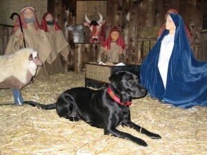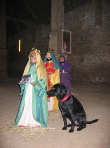 A very sad thing that happened this year was the loss of our beloved pet dog Monty at the age of just ten years. Monty was almost universally loved by all those who knew him. Even non-dog people were won over by his sunny Labrador nature. His only failure was to convince our cat, Bob, that dogs are a Good Thing. Monty was a particular fan of Christmas (all those interesting parcels under the tree!) and so in tribute to him and to the season, here are a couple of photos we took a few years ago when we took Monty to see the nativity crib in our local tithe barn. He wanted to join in and since I am sure all manner of animals would have been welcome in the original stable in Bethlehem, we thought this was rather nice. So this is for Bellbridge Montagu, to give him his "proper" name, the best animal companion a writer could ever have. Wishing you and all your family and friends, furry and other, a very Happy Christmas.