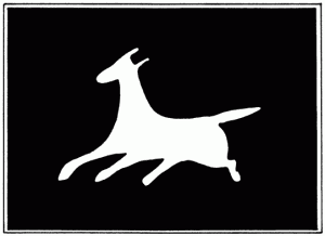 There is also a Red Horse – or there was. The Red Horse of Tysoe was cut into the clay of Warwickshire. It was 250 feet long and 200 feet high. Some ascribe it to the mid-fifteenth century, others to the Saxon period. In the 18th century however it was grassed over and trees grew on the spot, completely obscuring the figure. At a time when the white horses were being cut, the red horse disappeared. This is a picture of what it looked like – more like a deer than a horse to my eye.