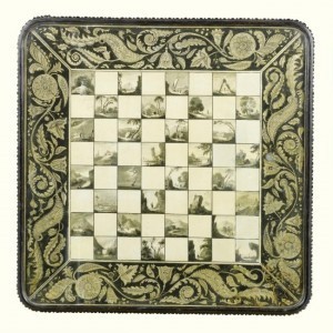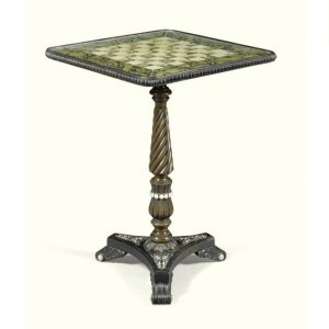 Sothebys last year. As you can see from the chequerboard top, it was designed for games such as chess or draughts but could also be used for cards games like faro, piquet and whist. If you click on the picture on the left you will see that the squares contain pictures of country scenes and that the surround also shows leaves and rosettes and flowers. It's exquisite!