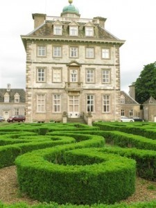 Interestingly there is a link between the medieval labyrinths and the showpiece Renaissance and Restoration parterres with their turf labyrinths or their low box hedging. A rather pretty example of this exists at Ashdown where the box was seen as the perfect complement to a hunting lodge (pictured). These were for decoration; there was little chance of being trapped inside one. However in the late 17th and 18th centuries the parterres developed into the first puzzle mazes with their hedge-lined paths. At Hampton Court Palace there is Britain's oldest surviving hedge maze with almost a kilometre of winding paths. This was planted more than 300 years ago for King William III and was originally created with hornbeam that was later replaced with yew. During its long history the Hampton Court maze has been patched up and repaired with other trees, which is rather charming. There's a picture of the Hampton Court maze at the top.