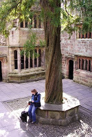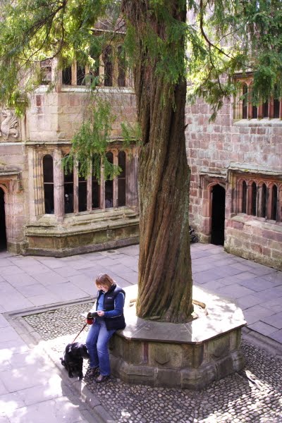 This is me, with Monty the dog, sitting in the courtyard of Skipton Castle under the yew tree that was planted in 1659 by Lady Anne Clifford to mark the repair of the castle after the English Civil War. Despite enduring a three year siege during the Civil War, Skipton is one of the most complete medieval castles in England. The yew tree stands in the Conduit Court (so called because it was where the spring water bubbled out) in the centre of the castle, surrounded by a range of early Tudor...