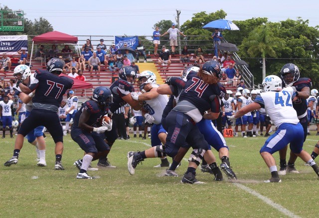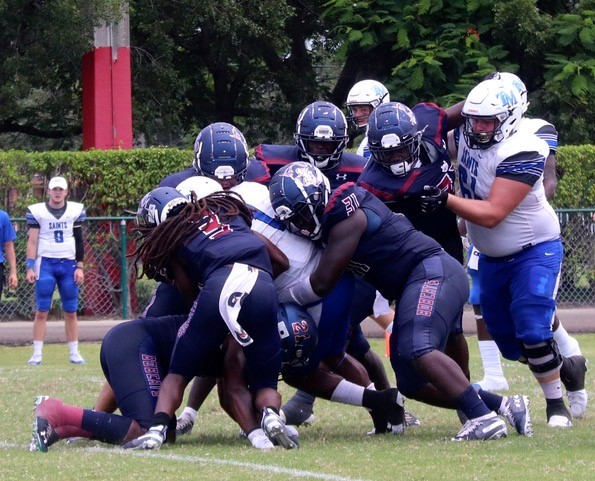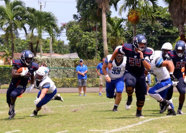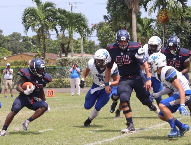 (MIAMI GARDENS, Fla.) – The Thomas More University football team defeated St. Thomas University, 38-14, today at Monsignor Edwards Pace High School in Miami Gardens, Florida.
