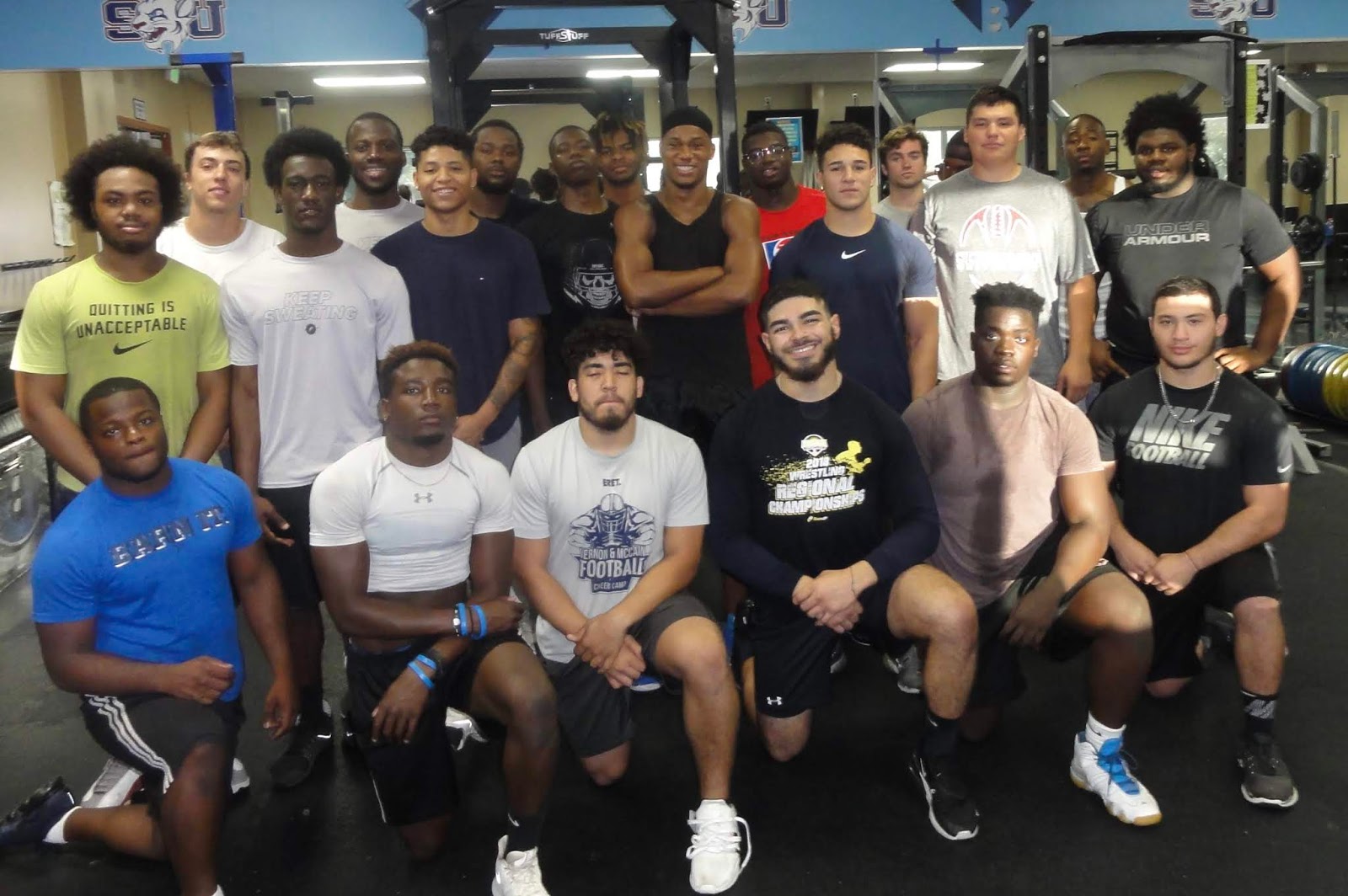 These are the first 25 football players ever at St. Thomas University. Most of these young men transferred in at the start of the second semester 2018/19. Some played at other schools last fall, most had not played for a year since high school.