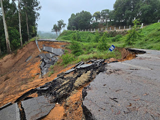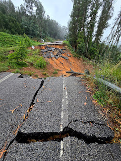 Estas duas fotos retratam o enorme aluimento na EN1/ IC2 (que não é uma estrada qualquer), entre Albergaria-a-Velha e Águeda, na descida para o Vouga. Aconceu já em 13 de março. Corre na zona que as obras de reparação não se iniciam antes do fim do verão, sendo de temer que não estejam concluídas até ao final do ano. Entretanto, o muito trânsito da via, incluindo muito transporte pesado, invade a vizinha aldeia de Serém.Tenho por certo que, se fosse na zona de Lisboa, a reparação já estaria em curso. Dois países: a capital e o resto...