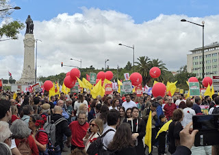 1. Na maré humana que em sucessivas vagas, durante várias horas, desceu a Avenida da Liberdade em Lisboa, do Marquês ao Rossio, para celebrar os 50 anos do 25 de Abril - em que também fiz questão de participar, após vários anos de ausência -, não foi notório somente o enorme empenhamento dos partidos de esquerda, dos sindicatos e outras organizações sociais, como é, aliás, tradicional.