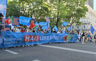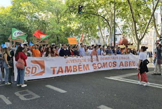 De facto, na cauda do desfile também marcaram presença delegações da JSD e da IL, como para dizer que o 25 de Abril não é exclusivo da esquerda, e também é deles (como, de resto, se lê na faixa social-democrata, na imagem). E têm razão: também eles são beneficiários da liberdade política e da democracia constitucional, que foram os objetivos primordiais do programa do MFA.
