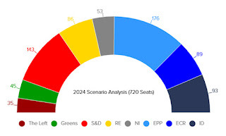 O principal risco da possível nova composição do PE estaria numa eventual maioria parlamentar das direitas (PPE+ECR+ID), cuja soma no quadro acima atingiria 358 deputados, apenas menos três do que a maioria absoluta (=361). Embora politicamente pouco viável, essa hipótese não deixaria de constituir um elemento altamente perturbador no desempenho político e legislativo do novo PE e na resposta aos desafios da UE nos próximos anos (financiamento, transição climática, alargamento, reforma institucional, etc.)
