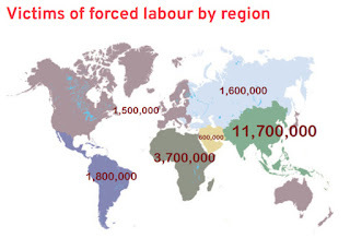 Estando o trabalho forçado naturalmente banido da UE, desde logo na respetiva Carta de Direitos Fundamentais (que tem valor constitucional), a verdade é que podemos importar bens de países onde essa prática contra a liberdade de trabalho seja tolerada, consentida ou mesmo oficialmente instituída. A OIT calcula que existam cerca de 27 milhões de trabalhadores em tais condições, sobretudo na Ásia e na África (ver mapa acima).