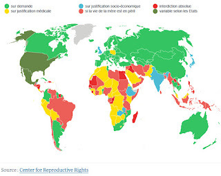 Assinalar esta conquista da liberdade das mulheres é tanto mais importante, quanto é certo que em muitos países do mundo - como se pode ver no mapa junto - tal liberdade ainda não existe de todo em todo ou está limitada a hipóteses assaz limitadas, como sucede em muitos países latino-americanos (incluindo o Brasil, apesar dos vários governos de esquerda), africanos e muçulmanos. Neste aspeto, tal como em muitos outros, há um fosso entre o Norte e o Sul...