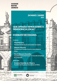 Quando se aproxima a renovação eleitoral quadrienal dos órgãos do poder local, lá para finais de setembro, este colóquio, em boa hora promovido pela prestigiada AEDREL, propõe-se revisitar e debater o estado da nossa democracia local.Pela minha parte, proponho-me abordar a situação das assembleias municipais, suscitando a questão do seu quadro jurídico-institucional, que vem desde 1976, e que limita o seu papel como verdadeiros parlamentos municipais, que deveriam ser.http://rpc.twingly.com/