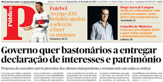 A manchete do Público de hoje é inteiramente injustificada, pois tanto as obrigações declarativas de património e de interesses dos presidentes da direção das ordens profissionais, como a figura do provedor dos clientes remunerado, constam da recente lei-quadro da ordens profissionais da Assembleia da República (Lei nº 12/23, de 28 de março), que nem sequer foi de iniciativa governamental, pelo que ambas esssas obrigações tinham obviamente de ser incluídas nos estatutos de cada ordem profissional, cuja apresentação ao parlamento incumbe ao Governo, dando execução à lei.