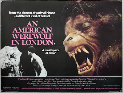 I've long been a fan of the film (I wrote a retrospective on it here) and adore it but had only ever seen it at home or with friends, first on murky VHS, then on gorgeous DVD (where I finally realised the figure steaming in the night air was the original werewolf and not Jack, as I'd always thought). When a company called Luna Flix began showing open air films at Stanwick Lakes, my friend David & I jumped at the chance to go and see this, the evening of the showing coinciding with a full moon, which was terrific. The film looked gorgeous, it was great to see it under the stars and on a big screen and the whole experience was great fun (I wrote about it here).