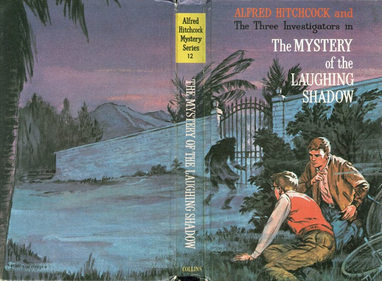 the one shown on the format a paperback cover.Bob Andrews and Pete Crenshaw are on their way home from a day spent in the mountains and, as they pass the old Sandow Estate, hear someone call for help. After investigating, they find a small gold statuette then see “a tall, twisted, humpbacked shadow with a beaky nose and small jerky head. It utters a wild, shattering laugh.” Terrified, they race back to Rocky Beach but when they tell Jupe the next day, they realise neither of them heard exactly the same thing. When a young Englishman, Ted Sandow, calls at the Junkyard offering Uncle Titus to rummage through some old barns, it seems as though the boys were seen and some people are very keen to get their hands on the statuette - or what was inside it.