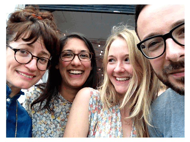 Us in front of our boxes! Top row left to right: Eleni Kalorkoti, Isabel Greenberg, MeMiddle row left to right: George Buchanan, Alice, Maggie LiBottom row left to right: Anthony Peters, Frann Preston-Gannon, Barney