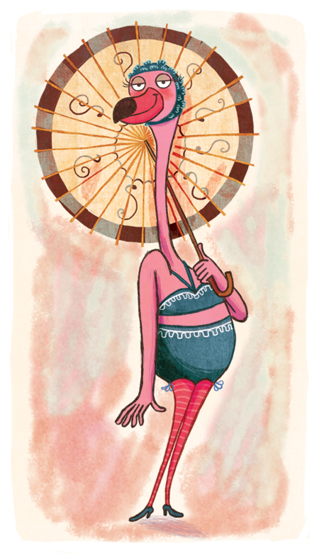 I'm working on very detailed drawings at the moment, so it's nice to do some lone characters as a break. Flamingos are my bird du jour, for now.