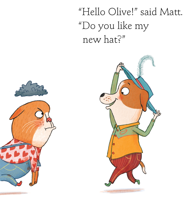 Olive is in a bad mood - today is not a good day. And look at all her friends, getting in her way! No, Olive does not want to play with Molly, she doesn't like Matt's hat and Joe is rubbish at throwing balls.