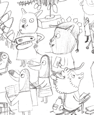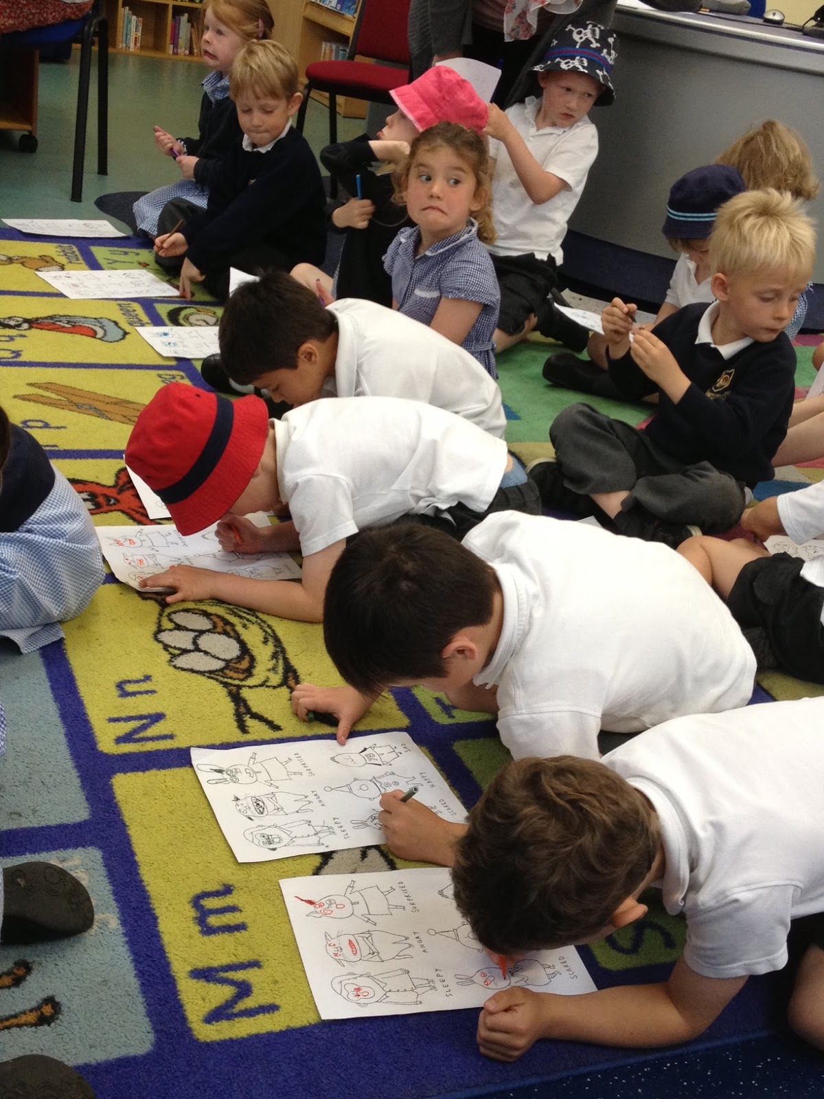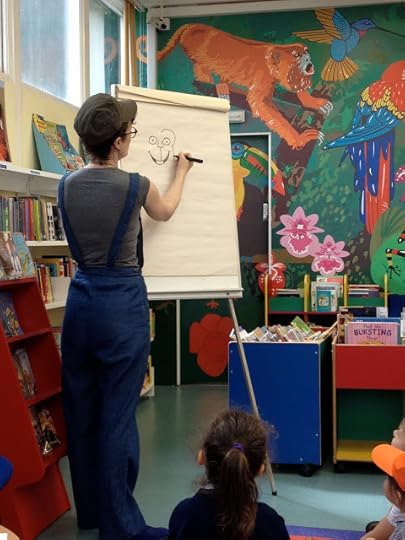 We talked about what being an illustrator is about, and what pictures add to books. Then I talked about how much I like drawing animals, and how important expressions are to show their characters and what they are feeling. That, and reading from the book, took up the rest of our session!