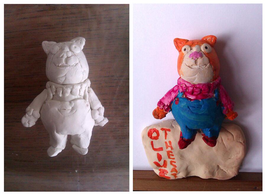 The wonderful illustrator Rachel Clowes sent me this photo yesterday. Her son Harry made a clay model of Olive during his half term holiday!