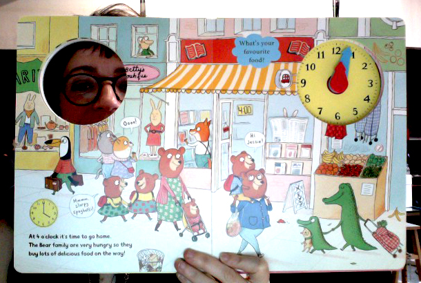 It's a beautifully produced book for young children who are learning about the time; there are lots of details to spot, and hopefully it will give a lot of pleasure.