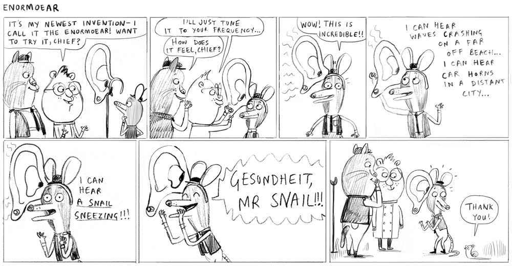 to finishing these mirror drawings of a rabbit and a dog, by me!