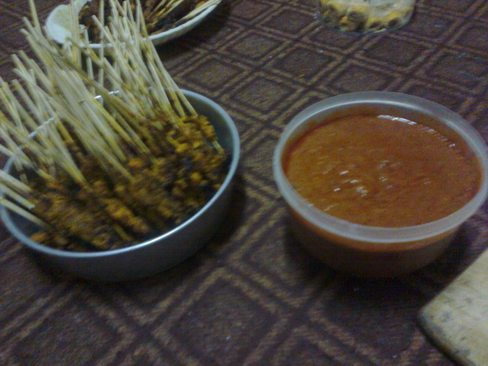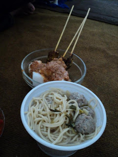sate dan bakso.malam tu bakar sate. oh ye. malam raya kitorang siapkan sate untuk pot luck yang kitorang nak buat raya kedua.