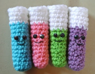 Materials:Beads, Rhinestones or BradsBlack Embroidery FlossGlueHook Size GJumbo cotton balls (2 or 3)ScissorsSewing NeedleWorsted Weight Yarn - ColorWorsted Weight Yarn - White