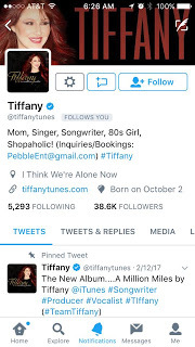 80's Pop Star - Tiffany ("I Think We're Alone Now" singer) follows Me on Twitter!!!