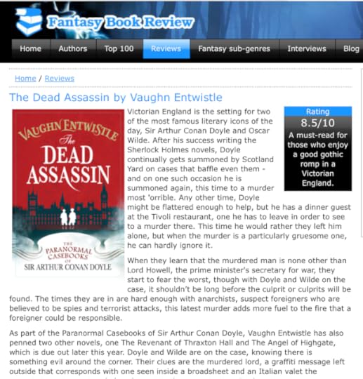 Terrific review of The Dead Assassin on the prestigious Fantasy Book Review website. Review Sandra Banks gave the book 8.5 out of 10 and Tweeted me that she is looking forward to the next book in the series.