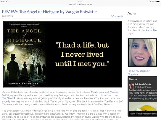 First review of The Angel of Highgate is fabulous. Found this on the web site of Melanie, an Aussie-Book Blogger who now lives in the gothic splendour of Edinburgh.