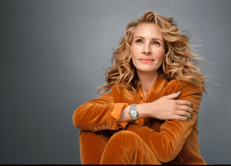 She’s wearing a beige top that accentuates the fiery color of her hair. Even though she’s dressed quite casually in slacks and said top, a glow seems to emanate from her. An effortless star quality.
