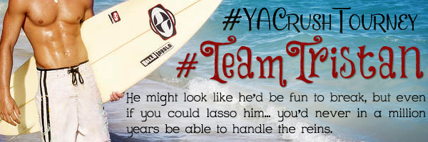 Thank you all SO much for your time and support, but it's not over! Now, Tristan along with 28 other drool-inducing guys (once the wildcard entrants are chosen) are in need of a "Book Blogger Advocate" to represent them and fight for them in the head-to-head rounds of the tournament. So, if you're a book blogger and want to represent #TeamTristan or another guy in the tournament, keep your eyes peeled for the opportunity to do so! Advocate sign-ups will start this coming week after the 28th so make sure you apply QUICKLY—doing that will help you have a better chance at the yummilicious crush of your choice!! And, I know in the past there have been co-advocates, so if that's something you're interested in, check with the YA Sisterhood now to see how you would go about doing that!!