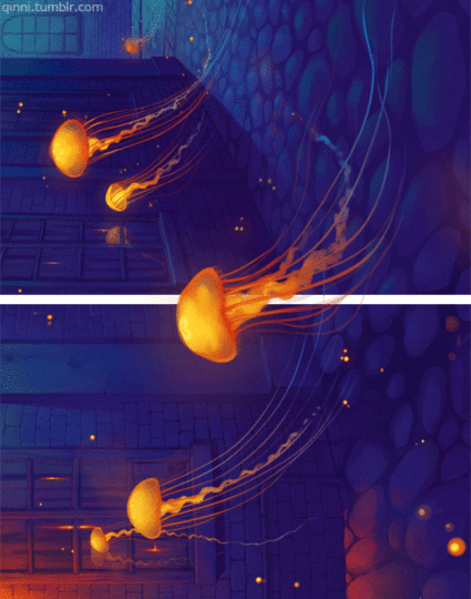 Don’t leave your house at night, when the jellyfishes comes out… Done in photoshop and SAI Wallpaper version | ♔