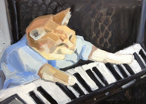 Keyboard Cat, 2007, 2013 BENJAMEME .018 Oil on vellum