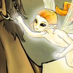 The next time Weft visited Taweel’s hiding place, he brought along a yahavim with a tuft of icy blue hair who shone like a star. While the young Weaver showed off a skein of thread he’d dyed purple, Taweel kept half an eye on the game of chase happening overhead. Something nagged at him until finally, he asked, “Why is that little one so much brighter than Omri?”
