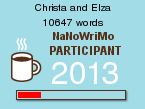 ♦ Next up is NaNoWriMo news. November was National Novel Writing Month, and writers go in with the goal of finishing a 50,000 word story in thirty days. This year, my daughter and I collaborated on a fun middlegrade story. Yesterday, we “won” by reaching 51,118 words. Now, we have a nice pile of raw material, which we’ll be turning into a first draft over the next several weeks. ♥