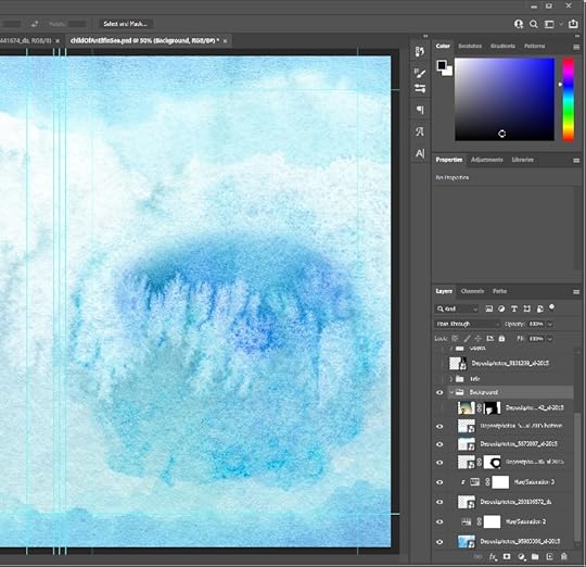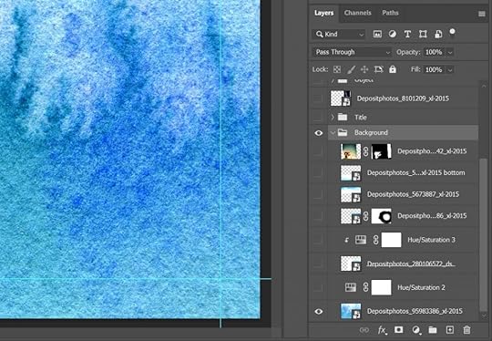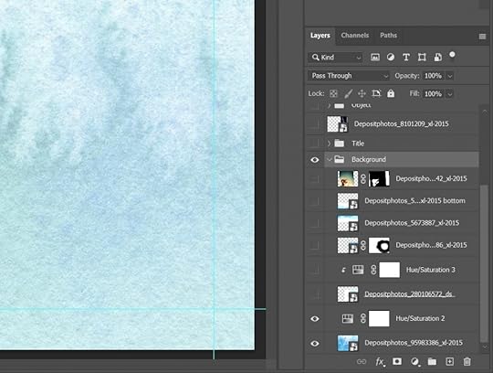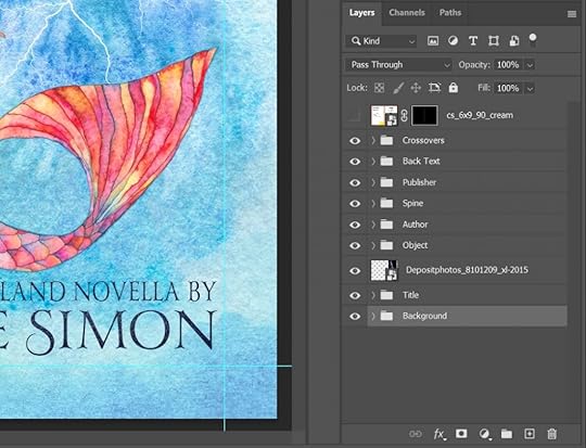 When I’m working on a cover, it’s easy for a layer to become lost in the stack. So I group those that I can–Background, Title, Author, Spine, etc. The exceptions are the single layers that I need to position individually.