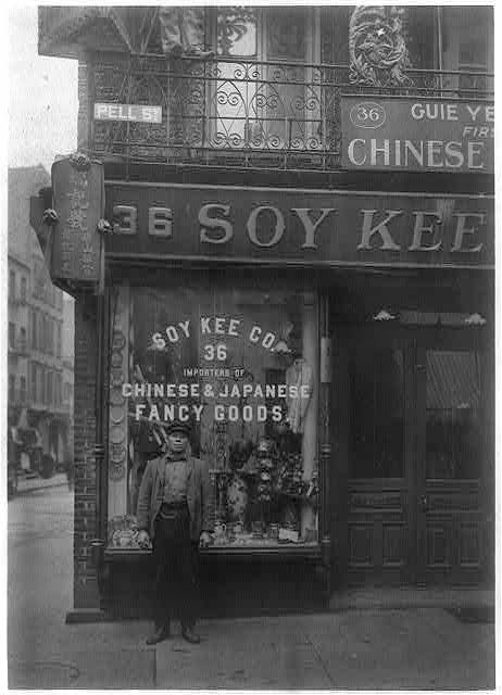 Soy Kee and Company on Pell Street, prior to 1897. Photographer. ____ "[Soy Kee Co. store front]" Library of Congress Prints and Photographs Division Washington, D.C. 20...