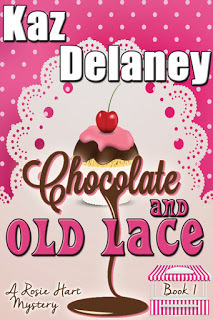 Currently reading:Chocolate and Old Lace (Rosie Hart Mystery #1) by Kaz Delaney (Pssttt... HelzKat Designs designed the cover this) - cozy mystery