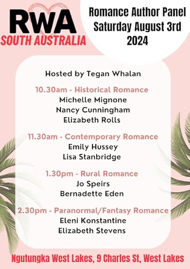 First of all, I'll be on the Paranormal / Fantasy Romance panel at the Romance Author Panel on 3 August at Ngutungka West Lakes.