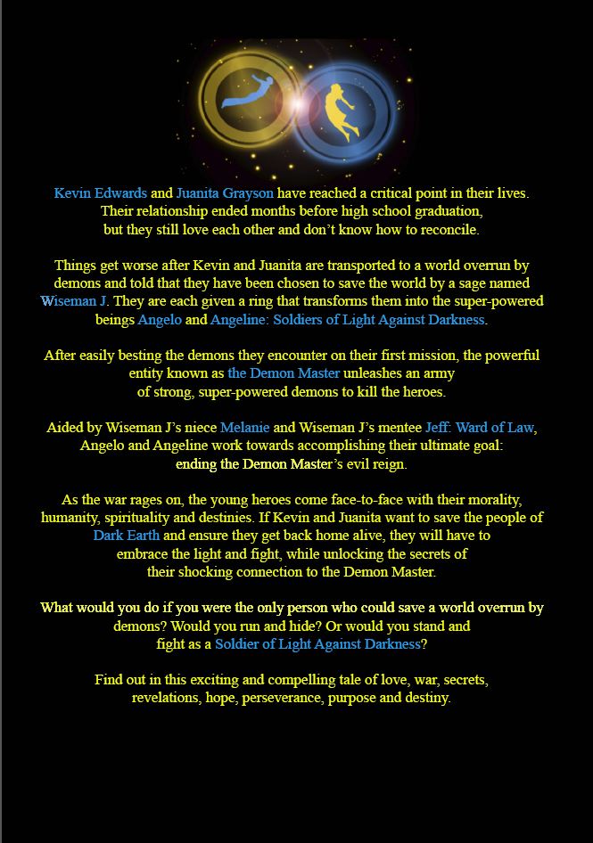 With the help of some old friends, Kevin and Juanita, who transform into the superheroes Angelo™ and Angeline™: Soldiers of Light Against Darkness, the heroes will learn that evil can follow you home and that some times, the price of being a hero is the loss of the ones you love.