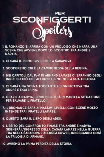 Ho terminato di scrivere il capitolo 15 – e sapete questo cosa vuol dire? Che sto per iniziare il capitolo 16, l'Andyia Battle! E quindi, come di consuetudine, ho qui per voi una bella locandina con ben dieci spoiler ufficiali su Per Sconfiggerti, ultimo volume su André Lamaze e Nadyia Volkov e sesto romanzo della serie Blood Bonds ♥ Volevo darvene alcuni un po' più, come dire, significativi, ma nope, non voglio rovinarvi la sorpresa :P Però, però, però . . . voglio darvene un undicesimo proprio sul nostro piccolo Andry *_*