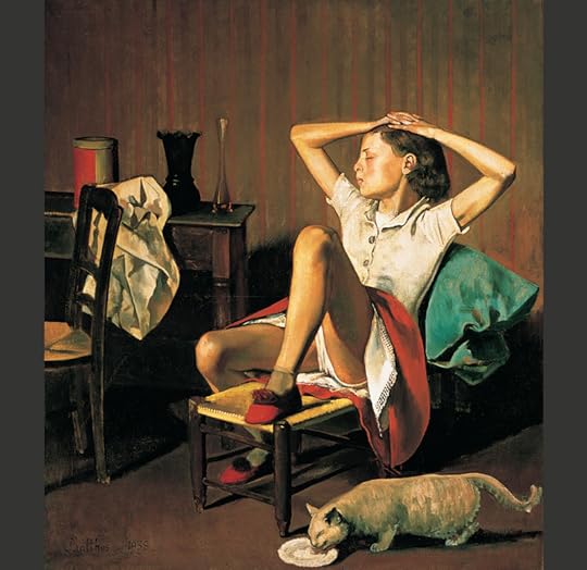 A signature Balthus, exquisitely crafted, tasteful to a fault, Thérèse Dreaming presents the nubile schoolgirl exposing herself coyly but shamelessly. Because of the girl’s age, her clothing, and her apparent indifference to the effect of her fierce sexuality, the image is more laden with libido than Titian’s Venuses, Goya’s Mayas, or Ingres bordello scenes. Thérèse emanates eroticism while looking blithely unaware of that fact.